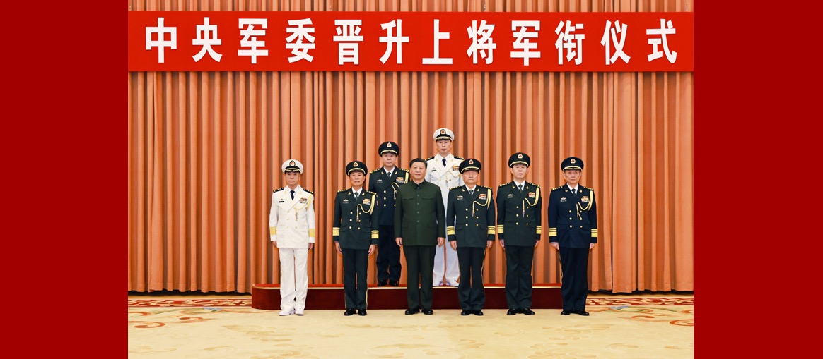 中央军委举行晋升上将军衔仪式 习近平颁发命令状并向晋衔的军官表...