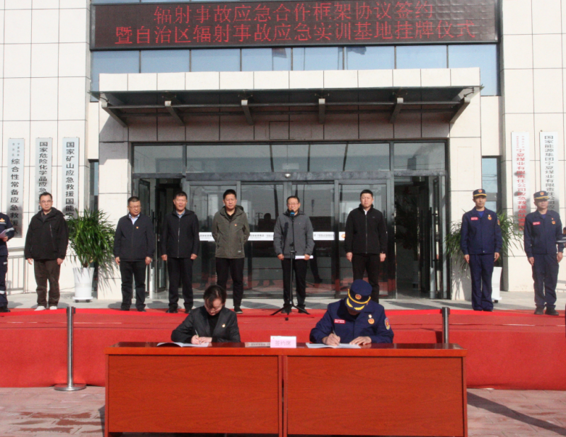 10月28日,宁夏核与辐射事故应急体系建设迎来一个重要里程碑——宁夏回族自治区核与辐射安全中心与国家能源集团宁夏煤业有限公司应急救援总队在宁东能源化工基地共同签署《辐射事故应急合作框架协议》,并挂牌成立宁夏回族自治区辐射事故应急实训基地。