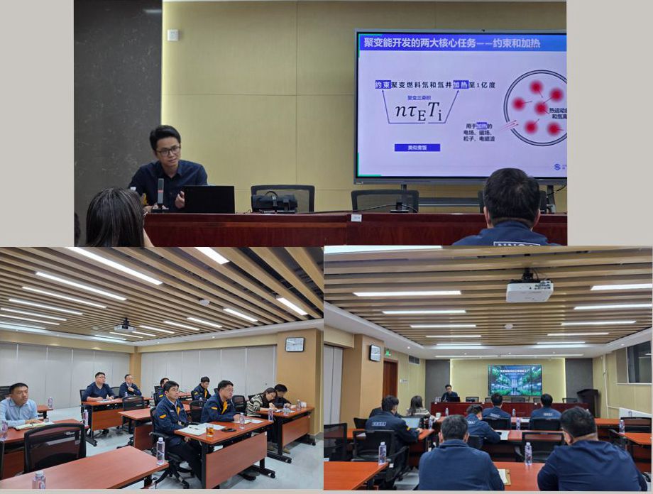 此次培训邀请清华大学工程物理系谭熠副教授进行授课。谭熠老师长期深耕磁约束受控核聚变研究领域,作为清华大学球形托克马克装置SUNIST及陕西星环聚能装置SUNIST-2负责人,承担了多个国家级重点科研项目,在聚变装置设计、运行安全等方面具有丰富经验。培训中,他系统讲解了核聚变发展历程及最新发展动态、不同类型聚变装置的特点、聚变装置电离辐射的影响因素和辐射防护要点等内容,并对参训人员提出的问题进行了逐一解答。