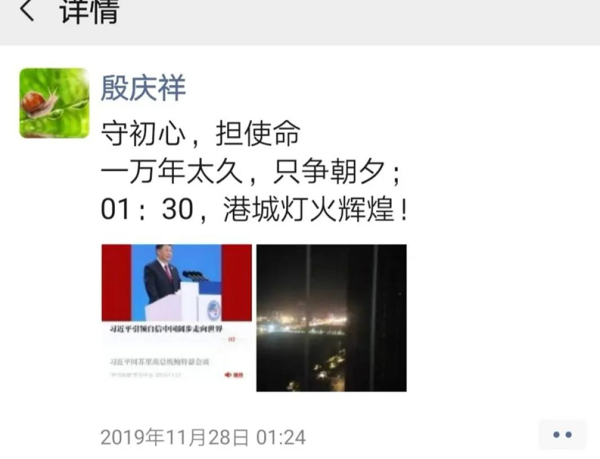 他一如既往的沉默和内敛,彼时脑海里时时浮现的是5号机组热试范围内35个未移交的工艺系统,6000多道未焊接的焊口和保温系统近5000套未安装的支吊架。11月28日的深夜他在朋友圈写道:“守初心、担使命,一万年太久,只争朝夕。01:30,港城灯火辉煌”。配图是学习强国10000积分的截屏和港城璀璨的夜景。(文、图:曹同欢)