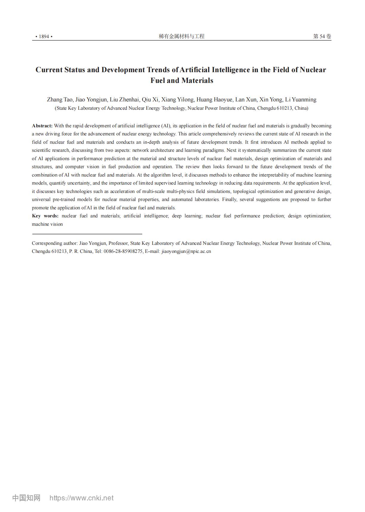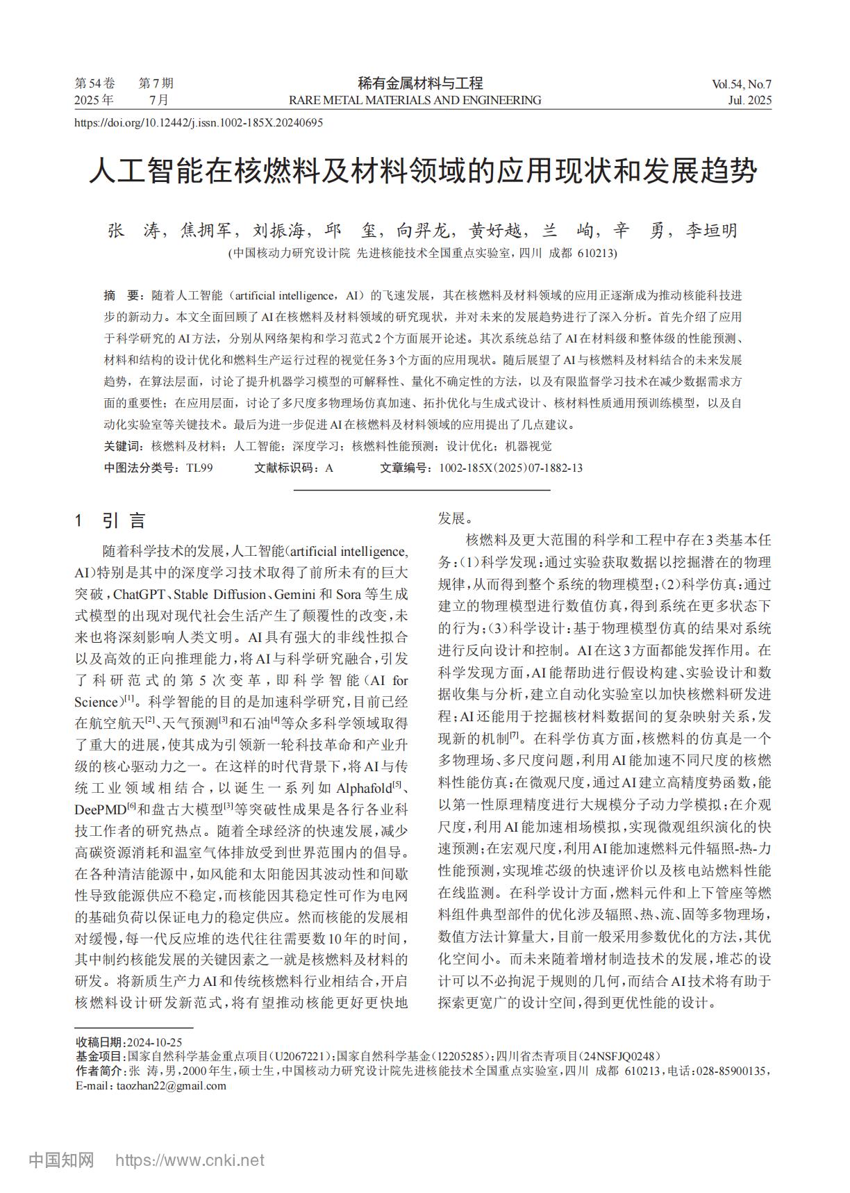 人工智能在核燃料及材料领域的应用现状和发展趋势