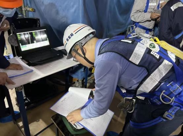 现场监督员早上7点30分提前1个小时抵达工作岗位,背上安全带,戴好安全帽,前往2号机组反应堆厂房内开展主管道焊接重大设备使用前准备情况的现场监督工作。现场监督员仔细核查了工作人员的人员资质、培训情况以及工作熟悉度,同时对现场光线、温湿度以及边界管理等作业条件进行了逐条核查,期间还多次提醒工作人员要对焊接区域的震动、风速做好管控。由于主管道焊接对于风速有严格要求,室内始终处于高温、不通风状态,现场监督员虽然浑身湿透,但依然坚持与所有的参建人员一起奋战,坚持“严慎细实”标准,认真履行职责。