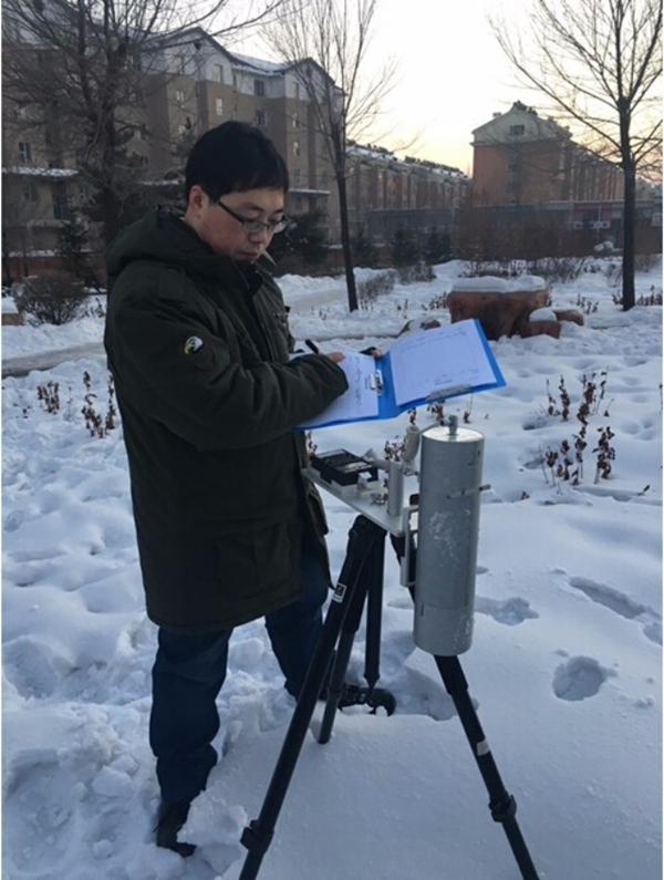 核与辐射安全中心监测技术人员正在记录伽马辐射空气剂量率数据