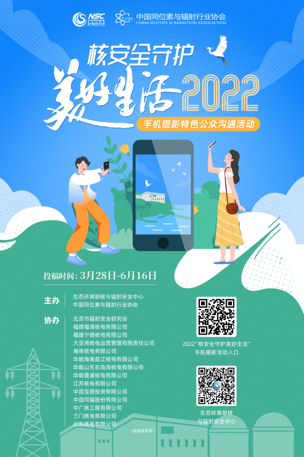 2022年将召开中国共产党第二十次全国代表大会,同时也是“十四五”承上启下的关键之年。核能是实现“双碳”目标重要选择,是实现绿色高质量发展的重要助力,核技术是世界高新科技。为充分展示核能核技术领域坚持总体国家安全观和核安全观,胸怀“国之大者”,完整准确全面贯彻新发展理念,推进强核强国、安全发展、创新高质量发展的丰硕成绩,提高公众对核能与核技术的认识和理解,积极在行业内和社会公众中传播核安全理念,汇聚齐心奋战“十四五”的磅礴力量向第二个百年奋斗目标进军。生态环境部核与辐射安全中心联合有关单位(详见海报),于2022年3-7月开展“助力双碳目标 喜迎二十大”——“核安全守护美好生活”(2022)手机摄影特色公众沟通活动,通过核安全守护美好生活的照片展示,为核能核技术安全高效发展营造良好的舆论氛围,把庆祝建党百年激发的爱党爱国爱社会主义热情传递下去,把全党全社会的精气神进一步振奋起来,激励广大干部群众满怀信心奋进新征程、建功新时代。以优异的成绩迎接党的二十大胜利召开。