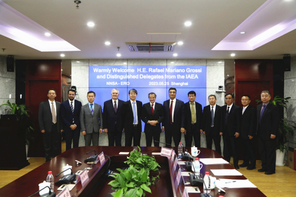 5月25日,国际原子能机构总干事拉斐尔•马里亚诺•格罗西到访生态环境部(国家核安全局)华东核与辐射安全监督站,并与生态环境部副部长、国家核安全局局长董保同进行会见。