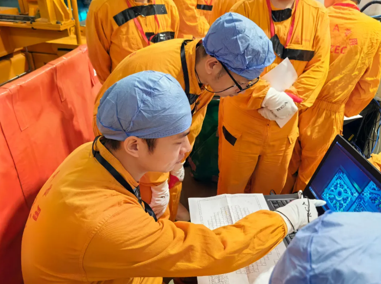 核燃料装载是核电机组从建设阶段转向运行阶段的关键里程碑,堆芯核查工作必须遵循最高安全标准,容不得丝毫差错。虽然已是凌晨时分,华东监督站的现场监督员们依然坚守岗位、全神贯注地盯着监视屏幕,对177组燃料组件的型号、编码与方向进行逐一核对,核对无误后在堆芯装载图上严谨标记。凌晨3时4分,核查工作圆满完成,堆芯所有组件装载与方案一致,标志着机组向正式运行迈出关键一步。