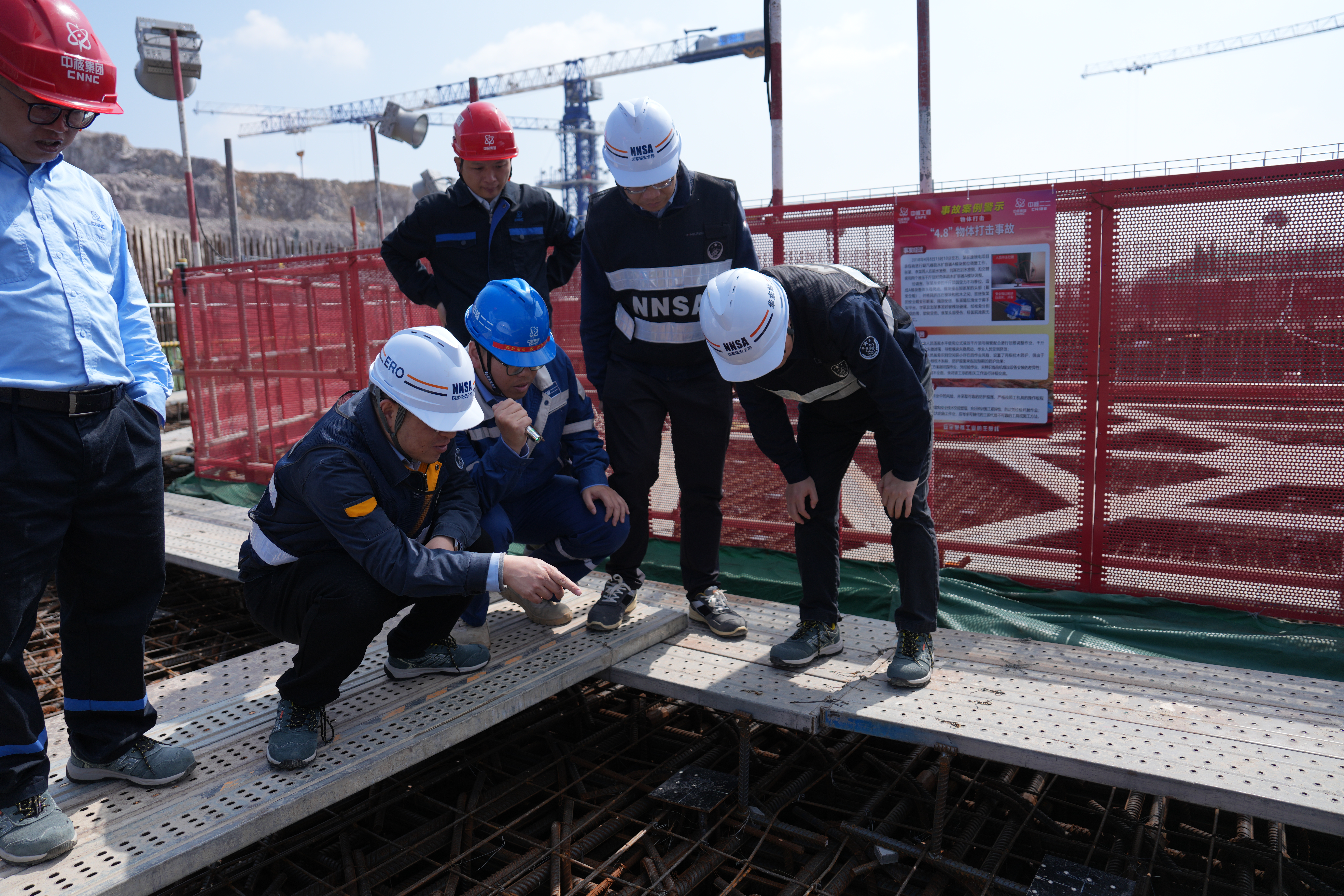 检查过程中,检查组按照检查方案开展了覆盖各环节的文件审查和人员访谈,着重关注质量保证体系运转、核岛施工管理条件和技术条件准备、前期检查遗留问题处理、经验反馈体系建立和运转等方面的工作,并对反应堆厂房筏基、原材料存储场地、混凝土试验室、混凝土搅拌站等关键区域开展现场检查。