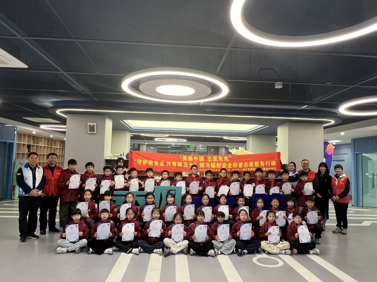 本次研学活动既是项目阶段性成果的集中展示,也是核安全科普使命的正式传递。在热烈的掌声中,40余名优秀学生正式受聘为“浙江青少年核与辐射安全观察员”,接过守护生态环境的责任与使命。