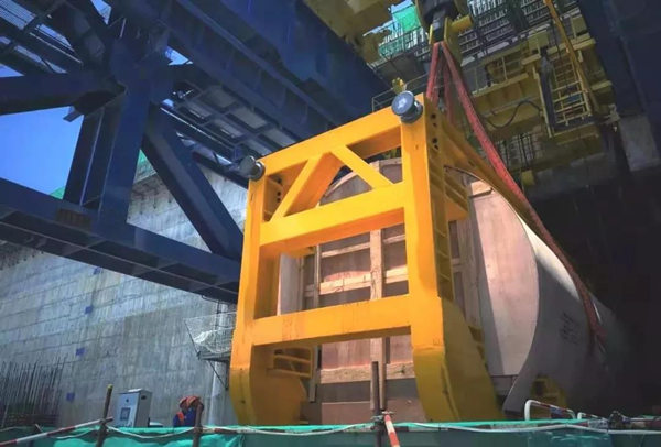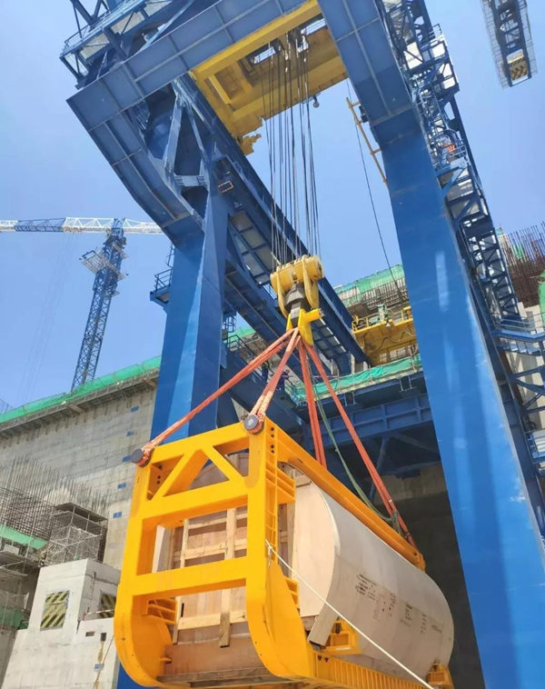上午11时左右,伴随着龙门吊的启动鸣笛,反应堆堆内构件开始从0米地面缓缓起吊,提升至16.5米平台,随后通过中国核动力研究设计院自主研发、为华龙一号量身定制的主设备弯道运输用重载车及驱动装置,将堆内构件从龙门架弯道运输引入反应堆厂房,并在反应堆厂房内翻转竖立。至31日,现场吊装工作顺利完成。