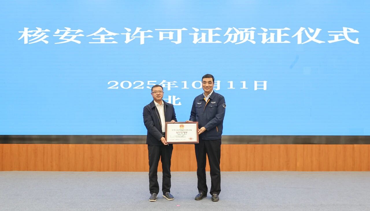 10月11日,生态环境部向中核集团旗下中国核电投资控股的漳州核电2号机组颁发运行许可证。生态环境部副部长、国家核安全局局长董保同为漳州能源颁发许可证,中核集团党组成员、副总经理张凯出席活动。当天16时13分,采用国家名片“华龙一号”技术的漳州核电2号机组开始装载首炉核燃料,标志着机组进入主系统带核调试阶段,为后续机组临界、并网发电等工作奠定了坚实基础。