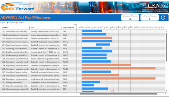NRC关于ADVANCE法案行动项的动态数据看板
