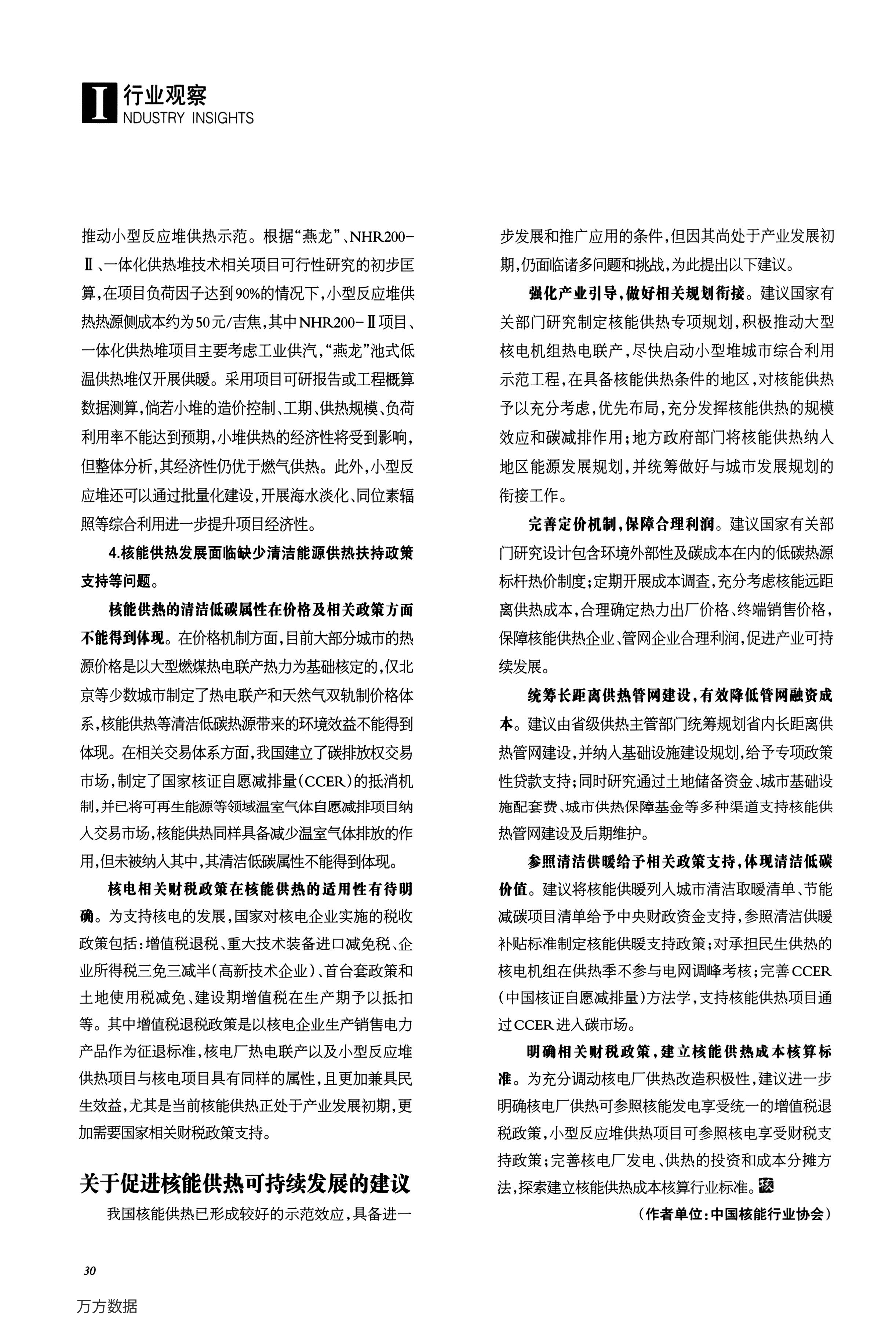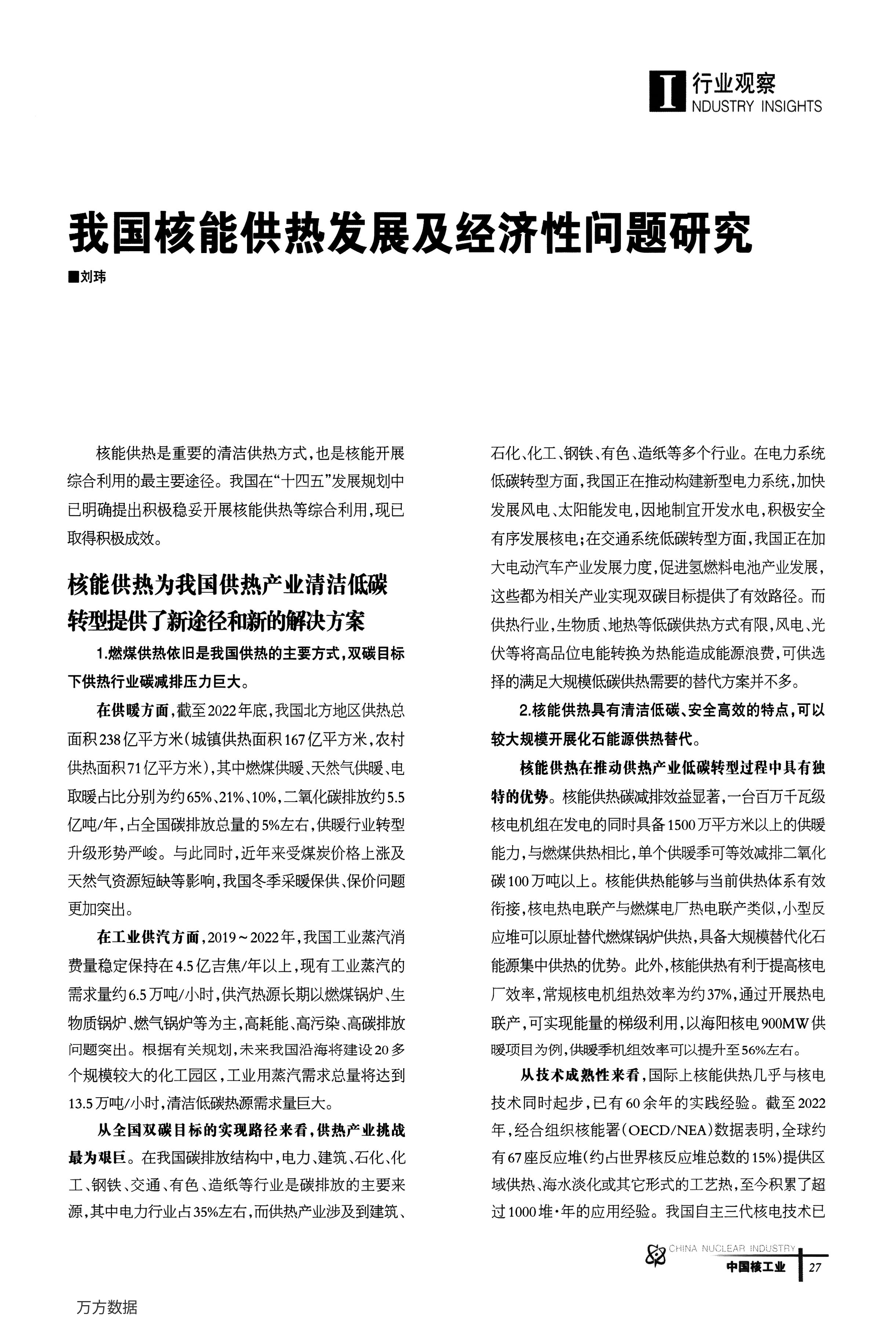 我国核能供热发展及经济性问题研究