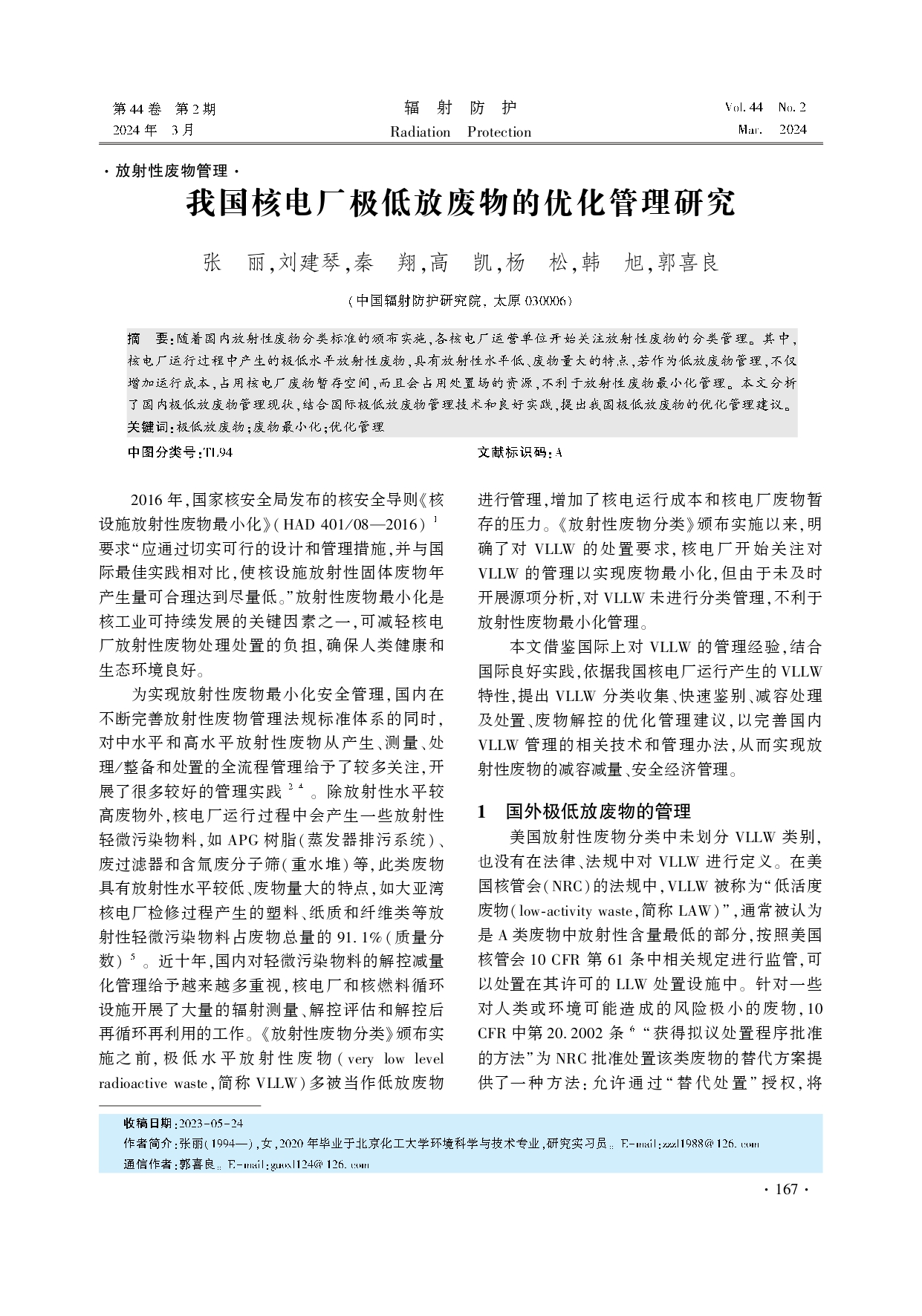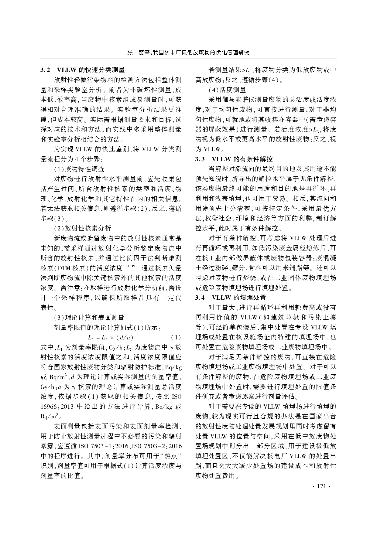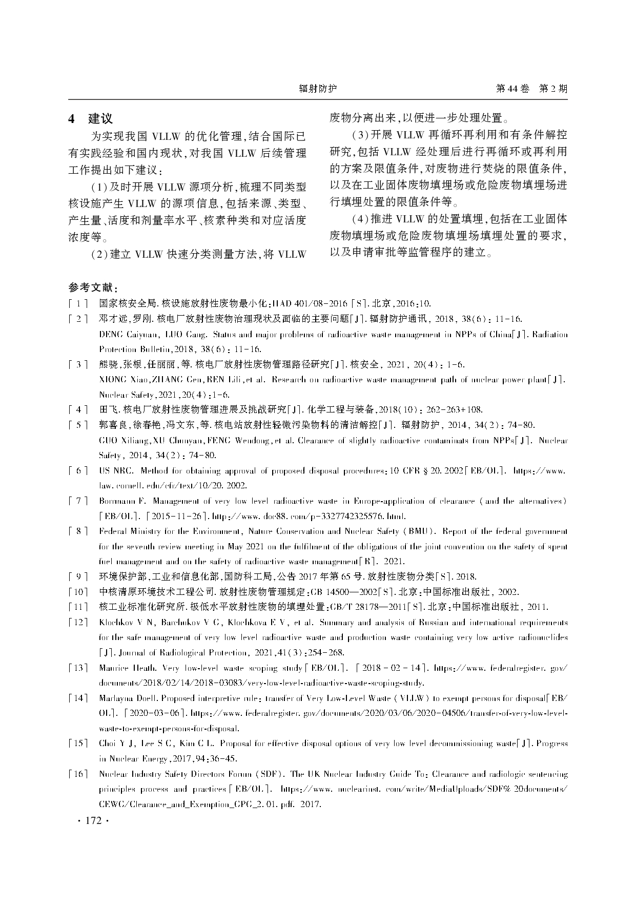 我国核电厂极低放废物的优化管理研究(文献)