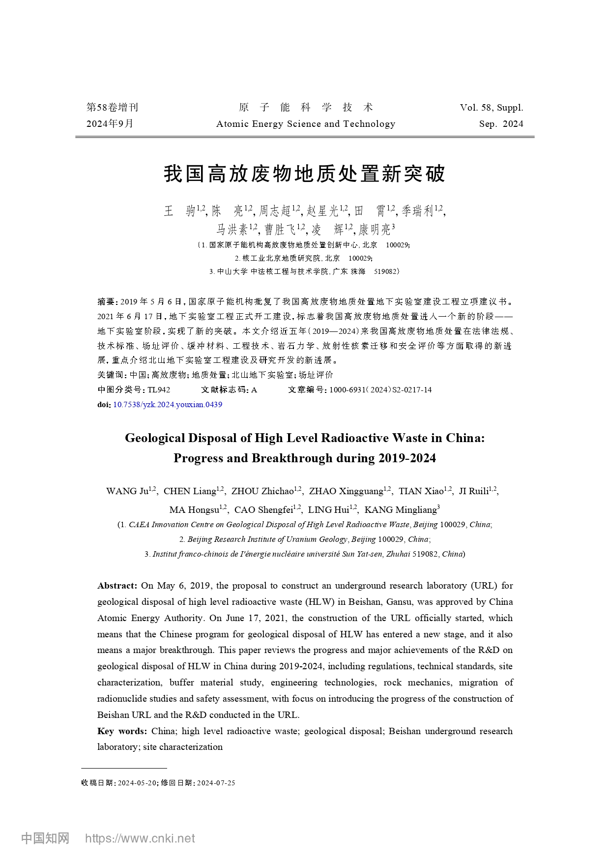 我国高放废物地质处置新突破(文献)