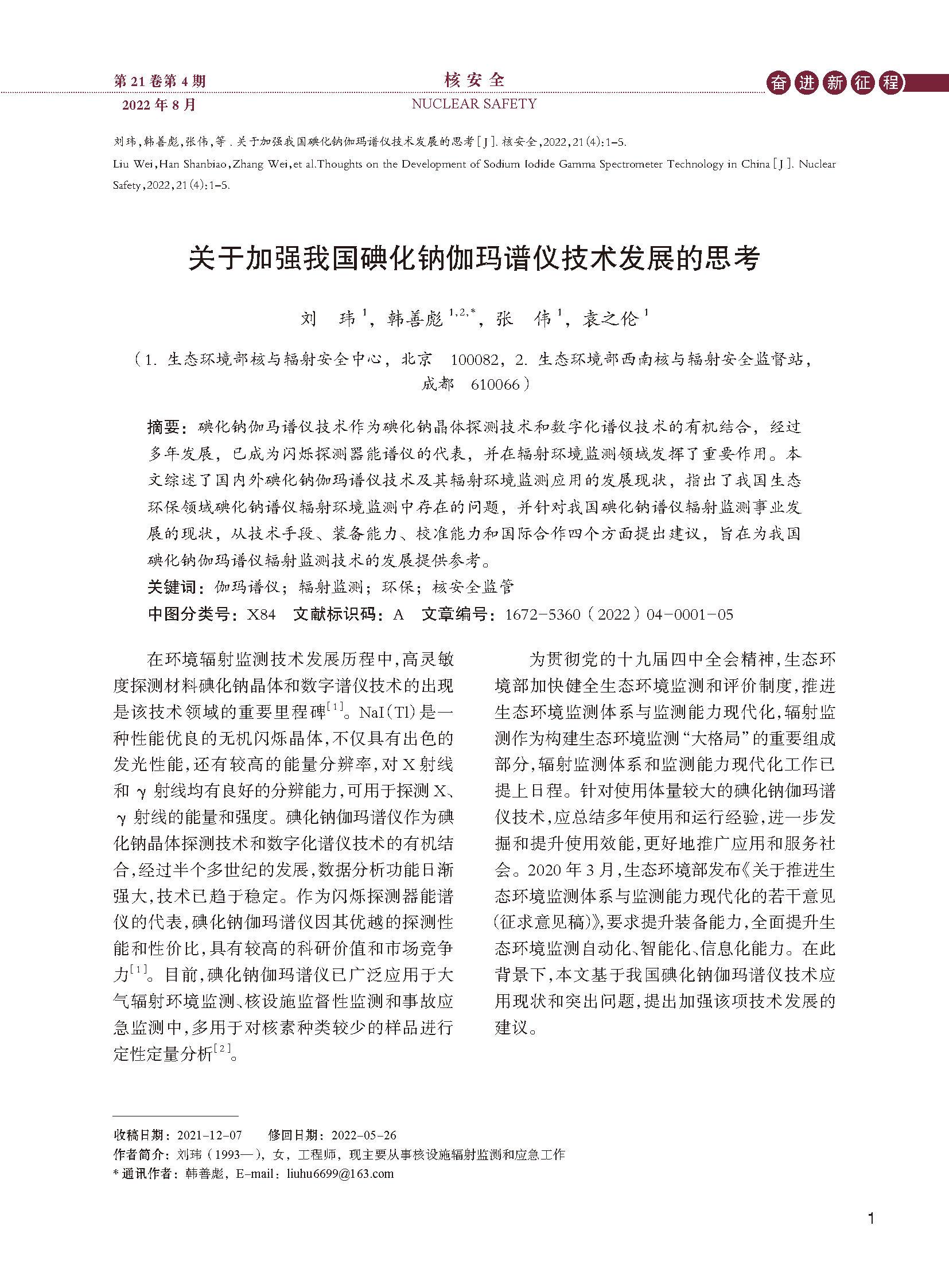 来源:《核安全》第21卷第4期 2022年8月
