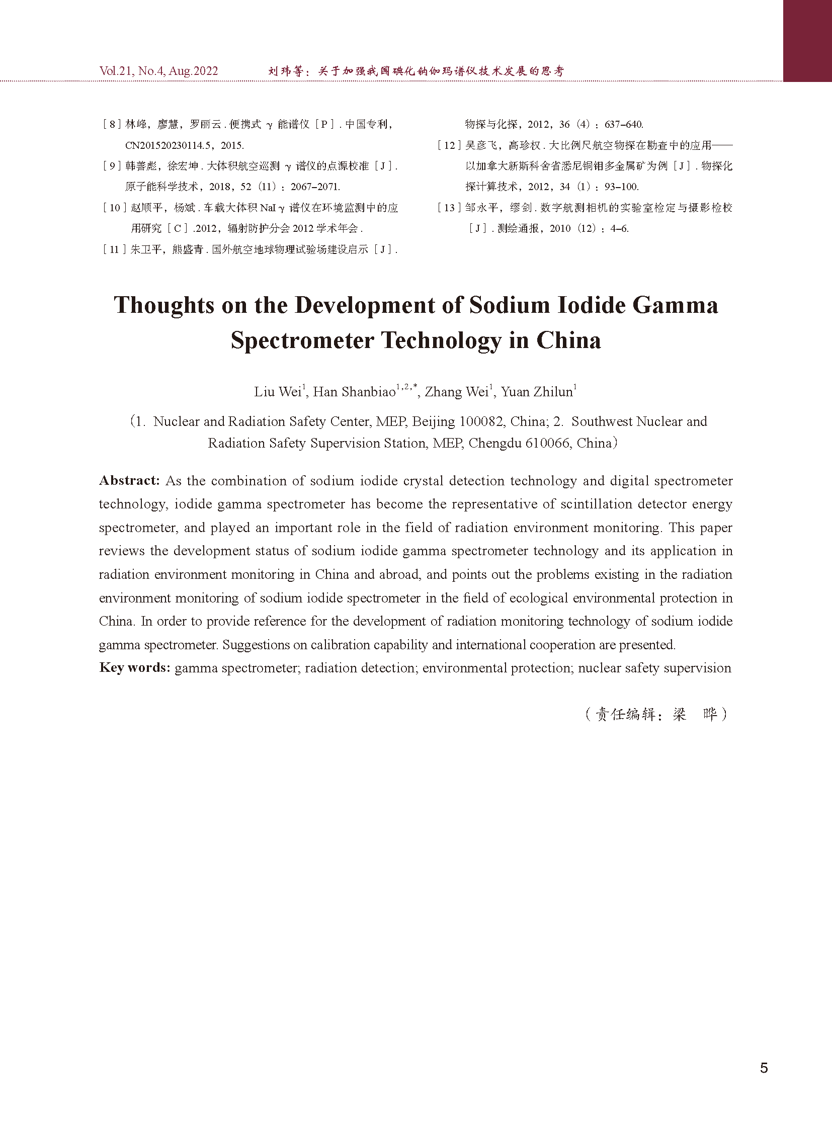 关于加强我国碘化钠伽玛谱仪技术发展的思考(文献)