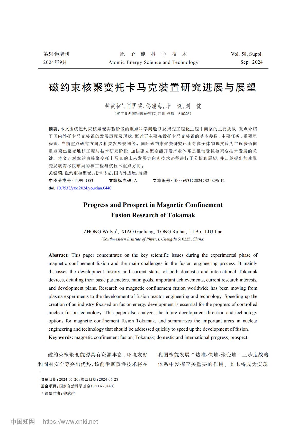 磁约束核聚变托卡马克装置研究进展与展望