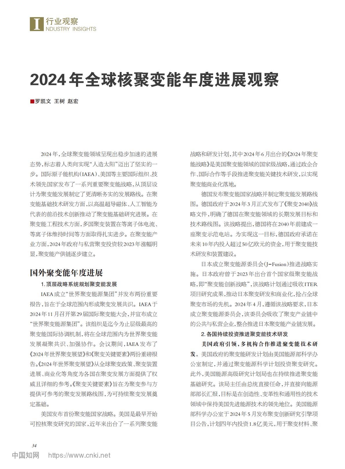 2024年全球核聚变能年度进展观察