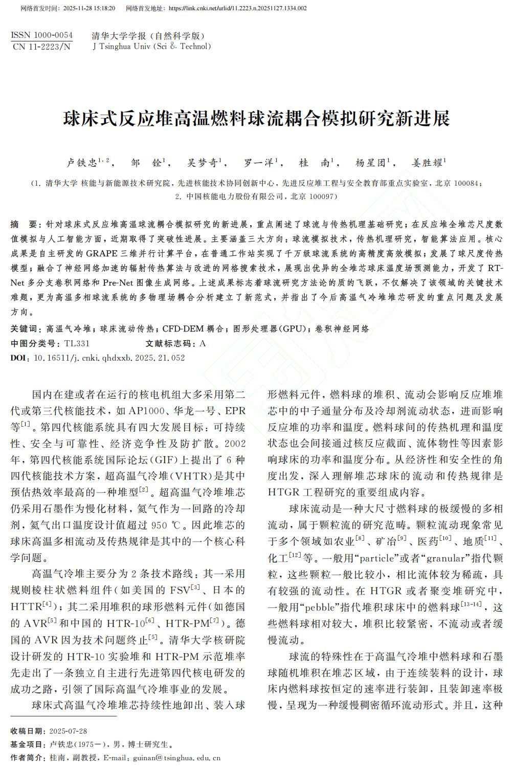 球床式反应堆高温燃料球流耦合模拟研究新进展