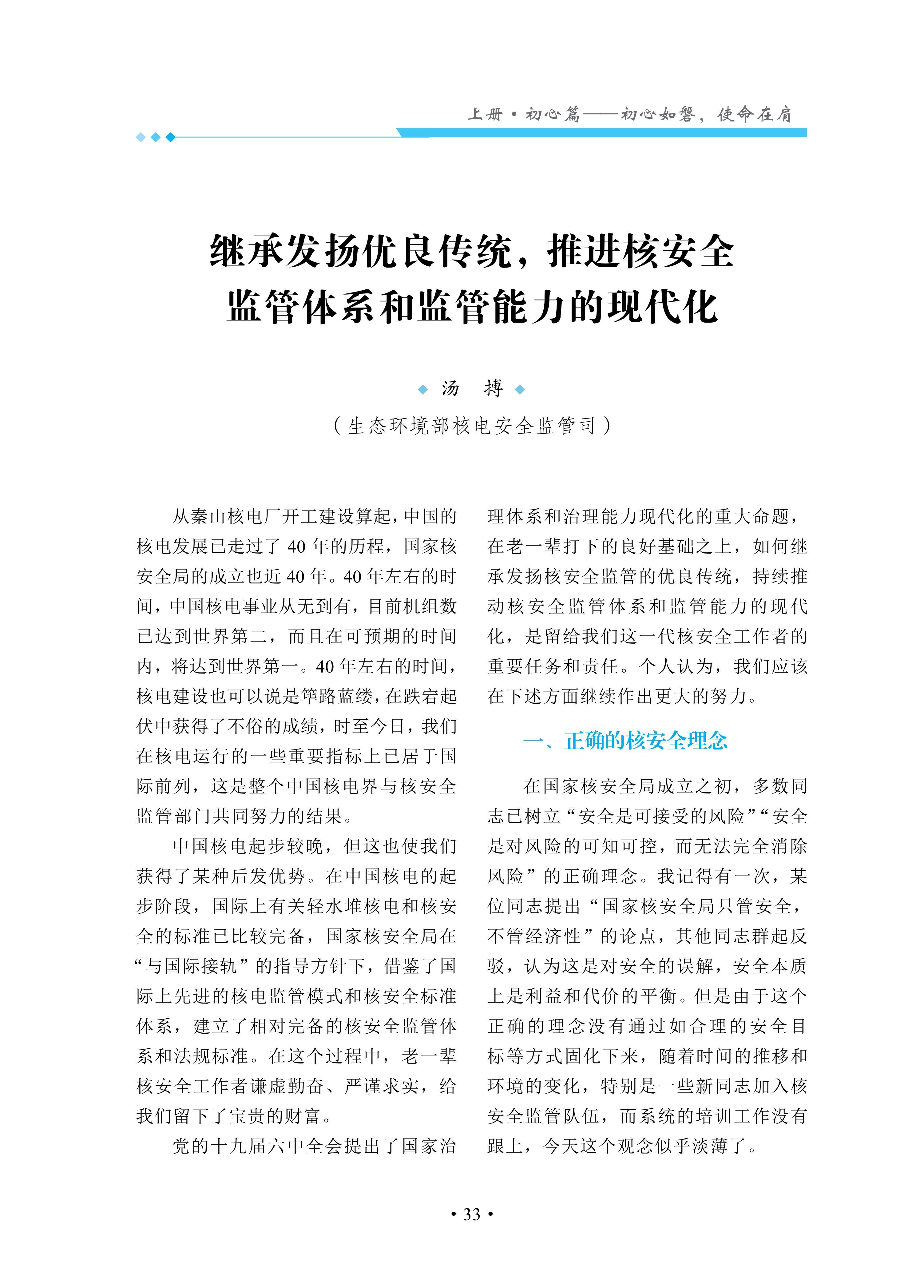 继承发扬优良传统,推进核安全监管体系和监管能力的现代化